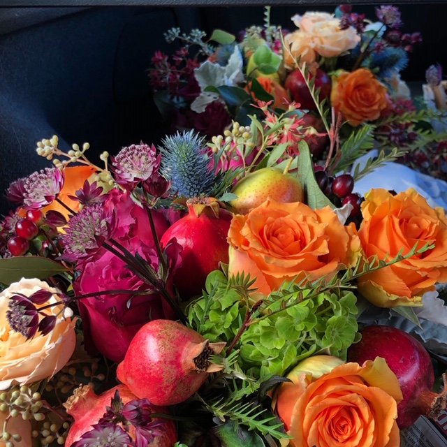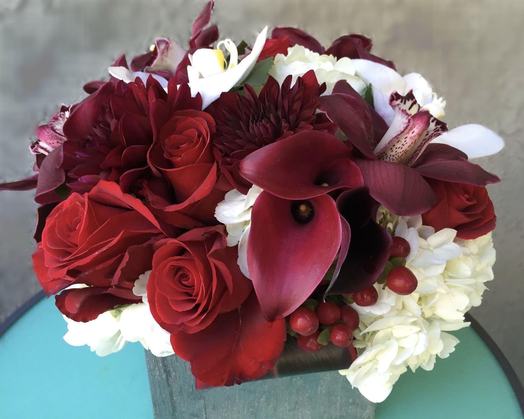 Colors in Bloom Design mixes classic holiday elements with interesting and unexpected materials to create striking arrangements, festive holiday planters and beautiful, unusual wreaths.